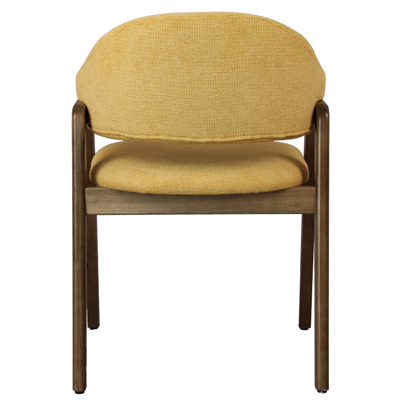 Versión presentada en fresno teñido nogal y tela Trendy Azafran.