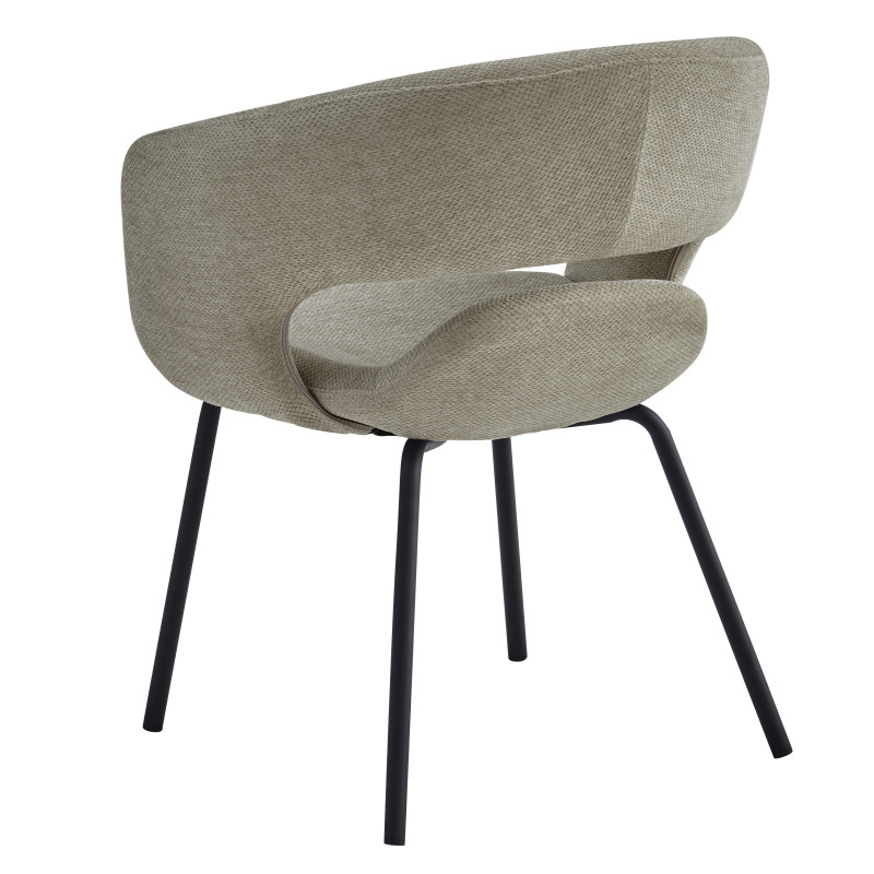 El sillón de mesa TRAVIS combina un diseño único con comodidad. Su forma envolvente garantiza un excelente confort al sentarse. Observe la hermosa línea de su respaldo curvado y ahuecado en la parte posterior.