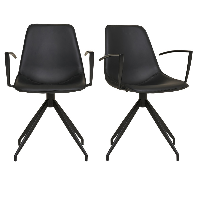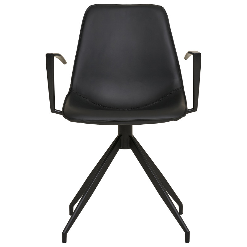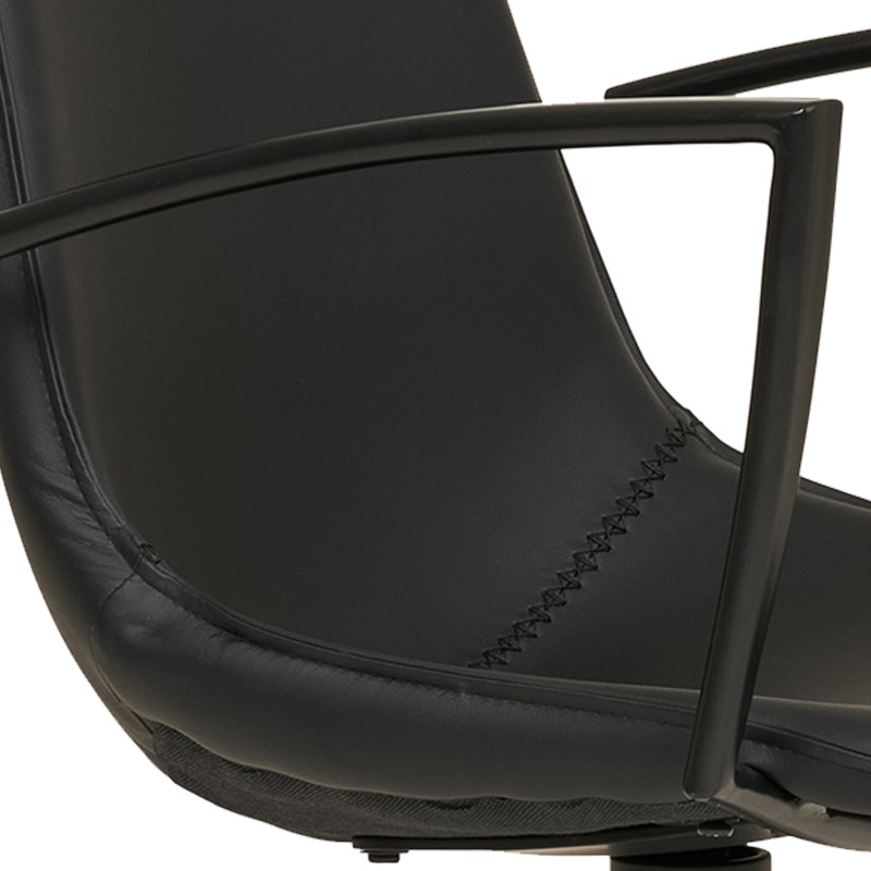 Diseño funcional. Este sillón de piel sintética negra ofrece una silueta elegante y un giro de 360°, todo ello sobre una base metálica. La combinación perfecta de material y líneas para un estilo moderno y práctico.