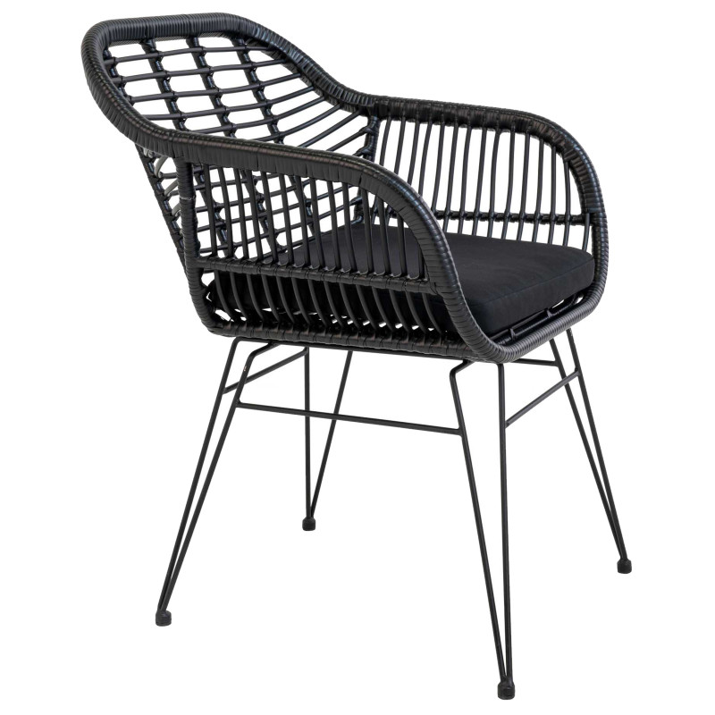 Exotismo oscuro. Esta silla de comedor de ratán negro trenzado aporta un toque de personalidad. La base de metal negro realza el contraste. La combinación perfecta de material y líneas para un estilo audaz y moderno. Dimensiones: Ancho 60 x Profundidad 57 x Alto 82 cm
