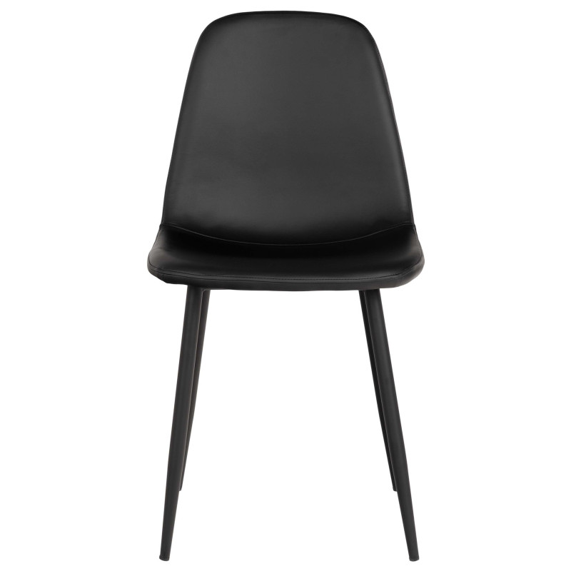 Estilo y contraste. Esta silla negra de PU con un toque vintage es ideal para un comedor con mucha personalidad. La base de metal negro le aporta un aire moderno. La combinación perfecta de material y líneas para un estilo único.