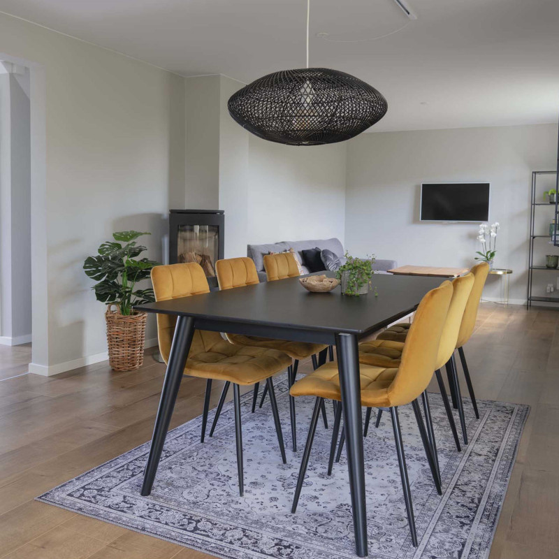 Luminoso y elegante. Este sillón de terciopelo amarillo mostaza aporta un toque audaz y una textura rica. La base de metal negro realza su estilo chic. La combinación perfecta de material y líneas para un interior vibrante.