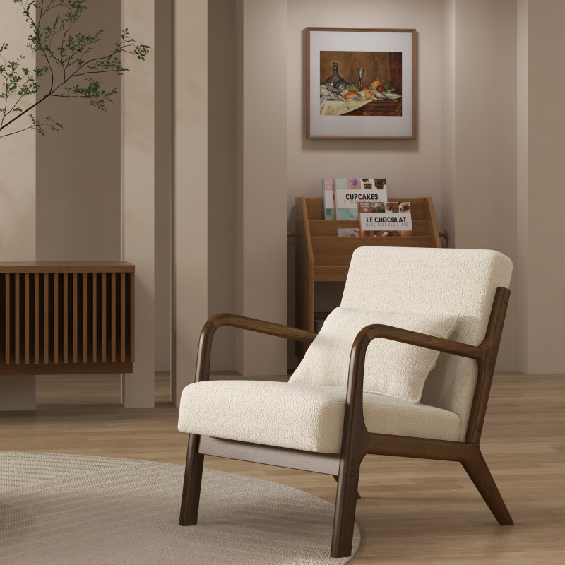 La estructura de madera maciza de caucho certificada FSC, para una gestión eco-responsable de nuestros bosques, tiene hermosas secciones curvas y curvas, el revestimiento de tela Curly da un look muy trendy.