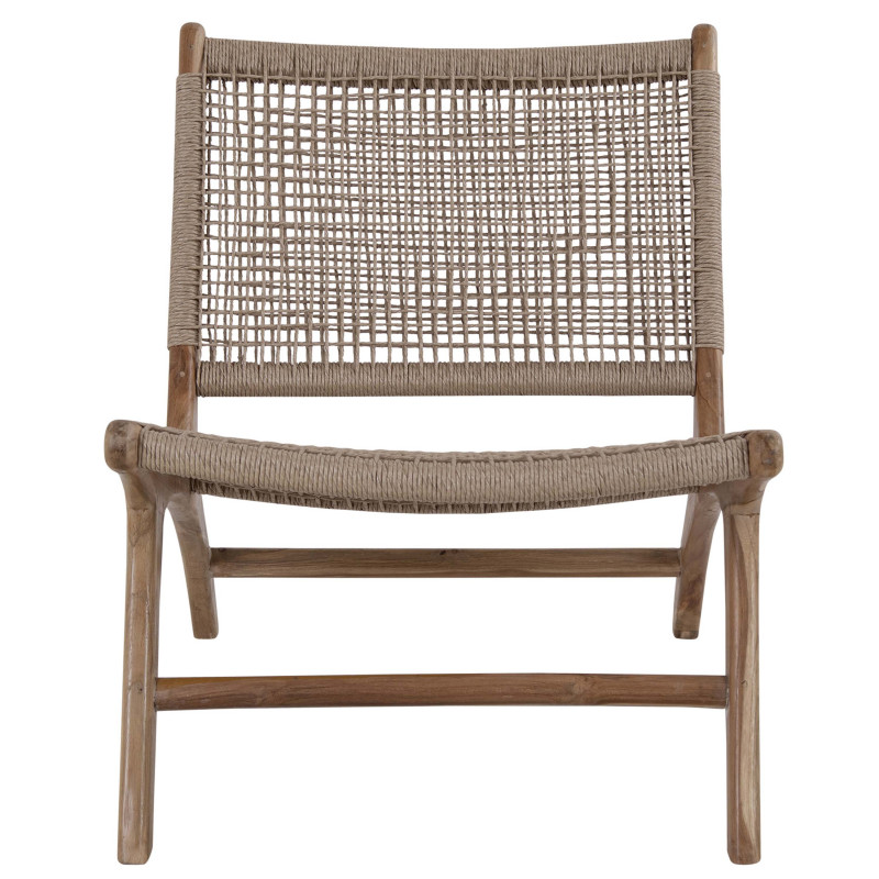 Un asiento con personalidad. Este sillón natural combina la robustez de la teca con la ligereza del ratán tejido. Es ideal para un salón o una terraza acristalada. La combinación perfecta de material y diseño para un estilo bohemio chic.