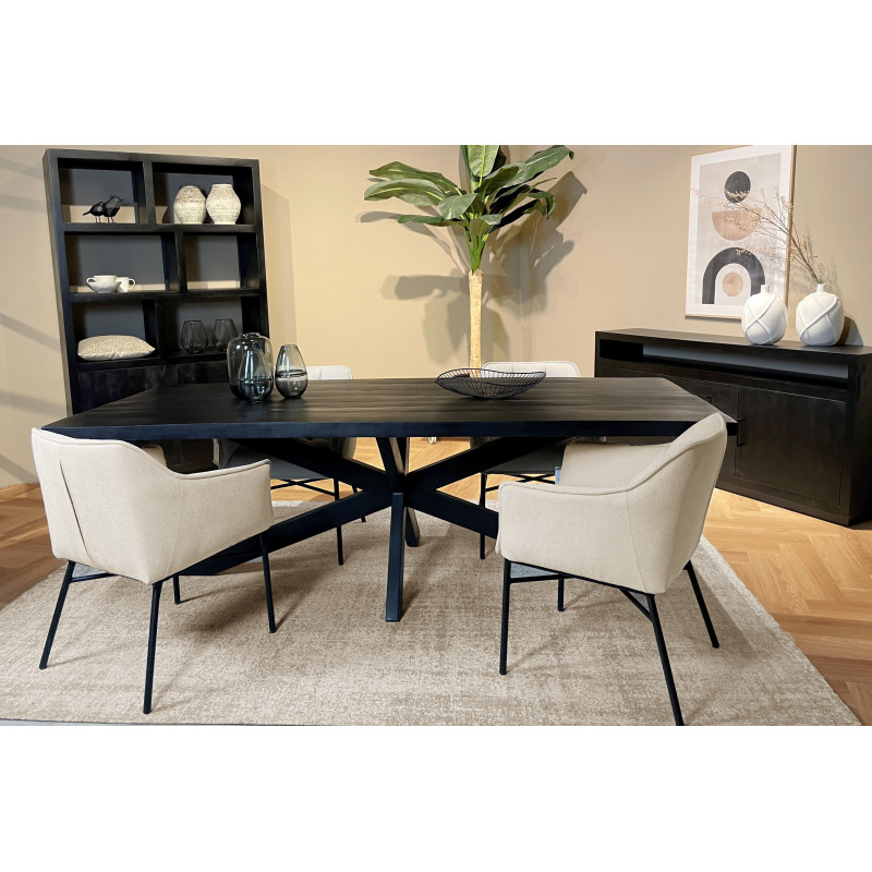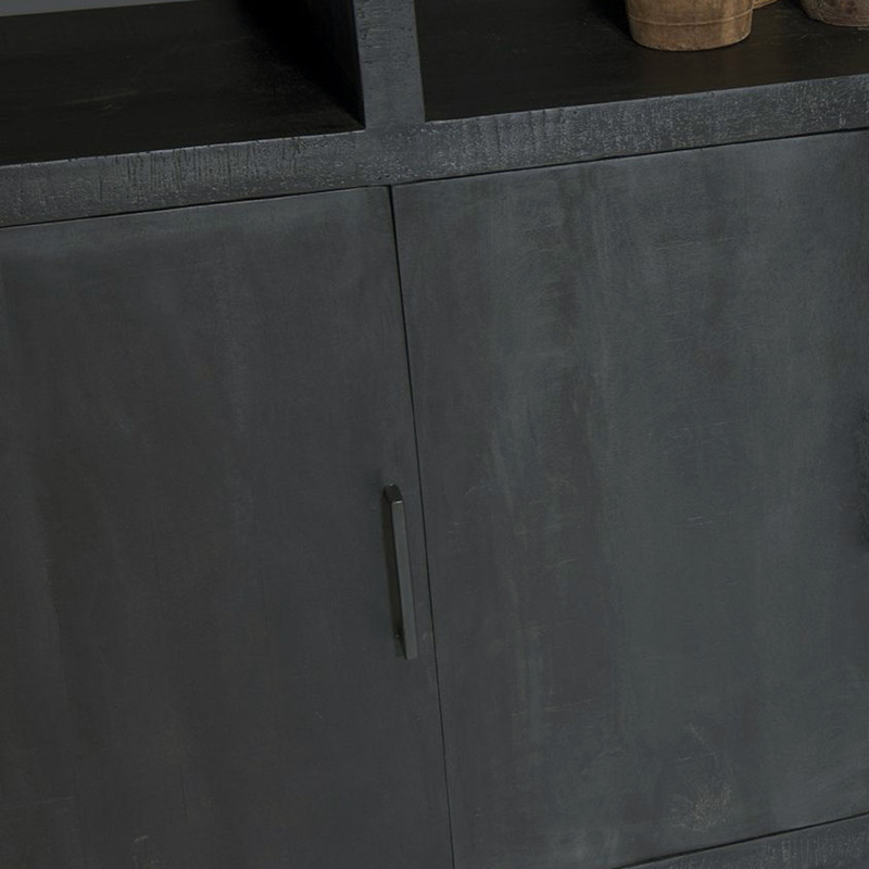 Bois de Manguier massif patiné noir, design épuré, la collection ANDUZ s'inscrit dans un style contemporain. Les lignes affirmées sont soulignées grâce aux sections épaisses des meubles et accentue le caractère robuste des meubles. La collection se décline en buffets, bibliothèques, meubles TV.