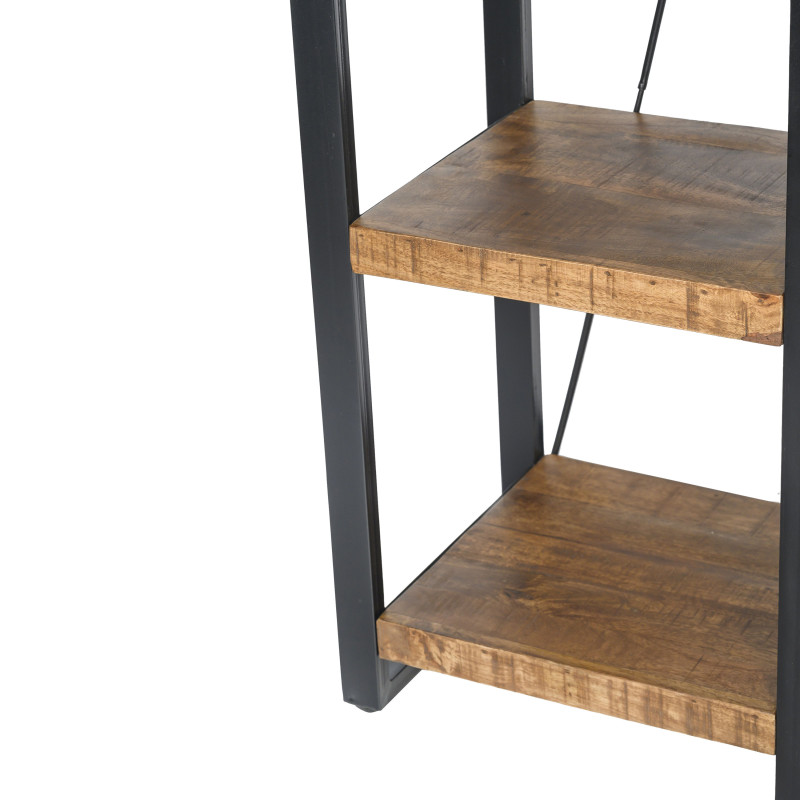 Robuste, massive, la collection DACCA impose son style affirmé grâce aux sections épaisses du bois et des échelles en acier noirs de la structure. Les détails du bois de manguier sont soulignés avec une belle patine. Le programme se décline en enfilade, buffet haut, bibliothèques, tables repas et petits meubles de séjour.