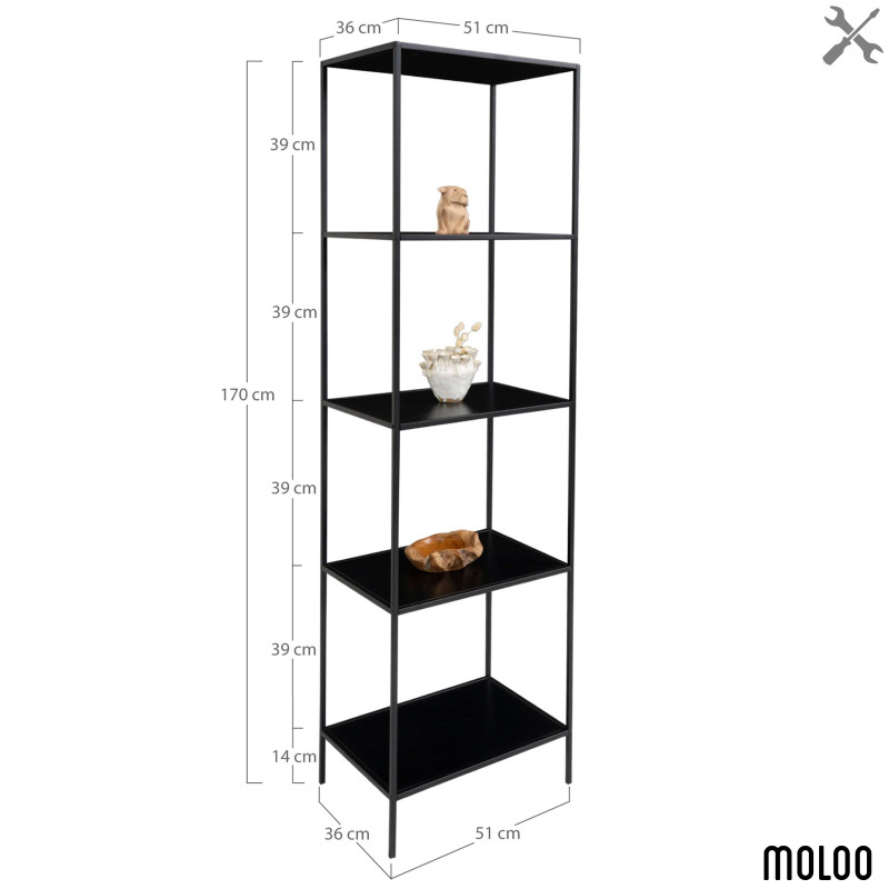Fine et pratique. Cette étagère noire et métal offre une grande capacité de rangement en hauteur. Son design élancé est idéal pour une utilisation verticale dans les petits recoins. L'alliance parfaite de la matière et de la ligne pour un intérieur organisé.