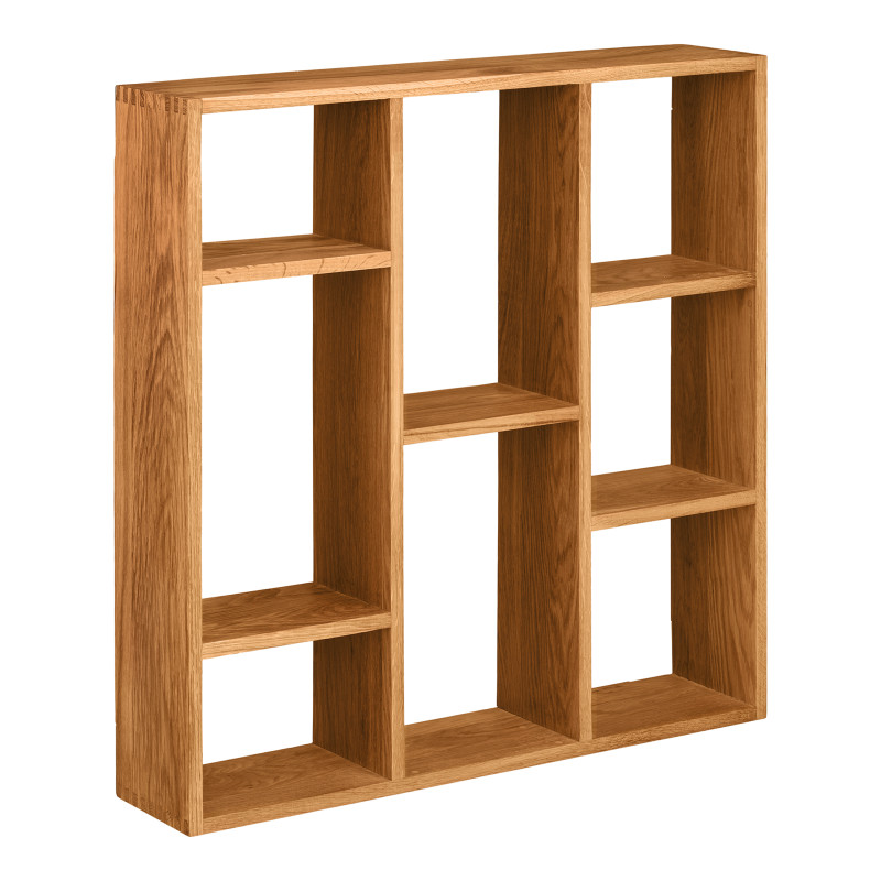 Collection KUB : Étagère Murale 6 Niches Rangement et style. Cette étagère murale naturelle en chêne massif avec 6 niches permet d'organiser et d'exposer. Son grand format en fait un élément central du décor. L'alliance parfaite de la matière et de la ligne pour un mur structuré. A combiner avec les autres éléments de la collection. Dimensions : L. 70 x l. 15 x H. 70 cm