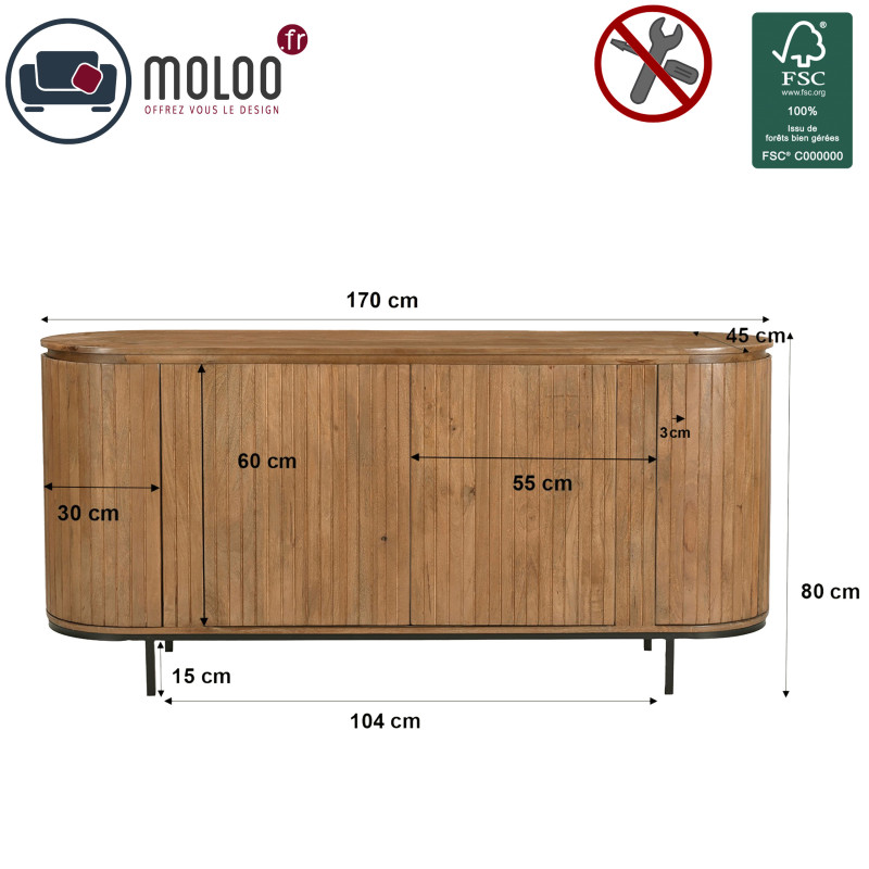 Le buffet présenté en finition naturelle, 180 cm.