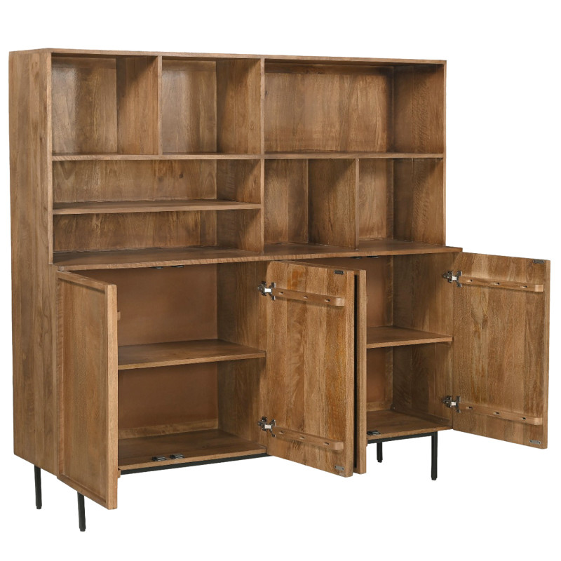 Le vaisselier présenté dispose d'une grande capacité de rangement intérieur avec 4 portes en partie basse et de multiples niches en partie haute.