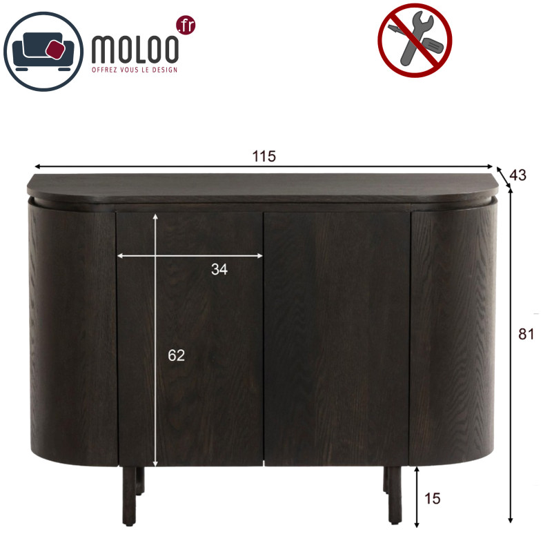 Vaisselier présenté en largeur 115 cm et finition chêne Expresso.