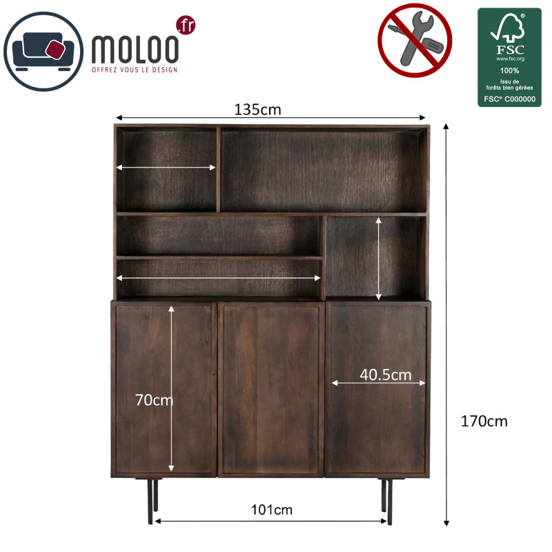 Tous nos meubles sont intégralement fabriqués en Bois massif à la main de façon artisanale. Les essences de bois utilisées sont certifiées.Ils sont livrés assemblés, à l'exception des tables