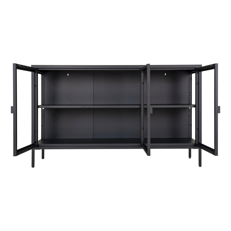 Collection MAINE : Buffet Noir 3 Portes Design industriel. Ce buffet long noir en acier et verre est une pièce maîtresse pour un intérieur moderne. Le design minimaliste et la couleur sombre créent un contraste saisissant. L'alliance parfaite de la matière et de la ligne pour un intérieur affirmé. Dimensions : L. 140 x l. 40 x H. 85 cm