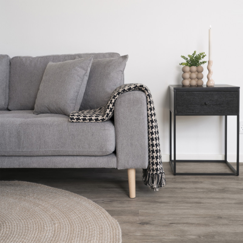 Chaleur intemporelle. Ce canapé d'angle en tissu marron avec méridienne à gauche est un ajout cosy et fonctionnel. Sa couleur riche et son design généreux invitent à la détente. L'alliance parfaite de la matière et de la ligne pour un espace accueillant. Coussins déco inclus.