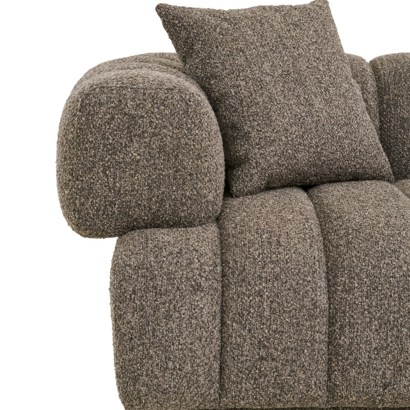 Collection OXFORD : Canapé 4 Places Tissu Bouclé Cocon compact. Ce canapé 4 places en tissu bouclé taupe offre une assise ultra-douce, et un design affirmé souligné avec les surpiquages. L'alliance parfaite de la matière et de la ligne pour un espace cosy. Confort enveloppant garanti. Dimensions : L. 226 x l. 106 x H. 69 cm