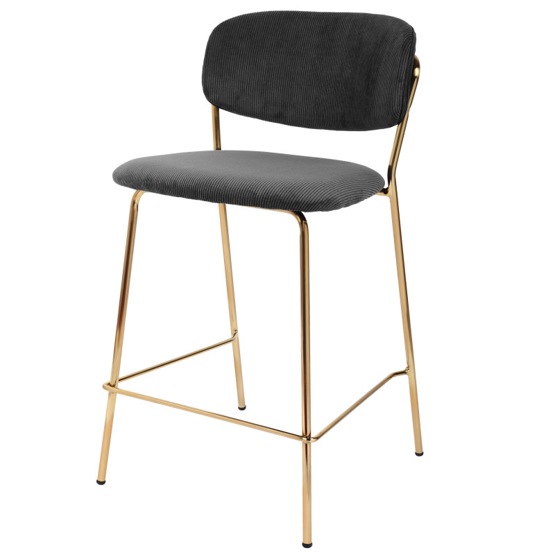 Sa structure tubulaire de 16 mm en métal doré finition brossée assure une hauteur d'assise de 65 cm, compatible avec les ilots centraux et plan de travail.