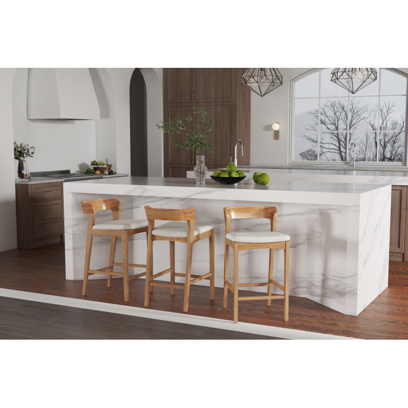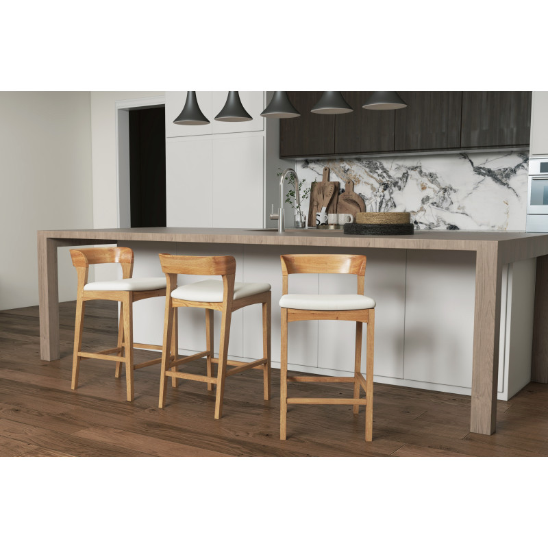 Structure en Chêne massif FSC européen, rembourrage de qualité (densité 28kg/m3) et hauteur d'assise en 65 cm, idéal pour un îlot de cuisine..