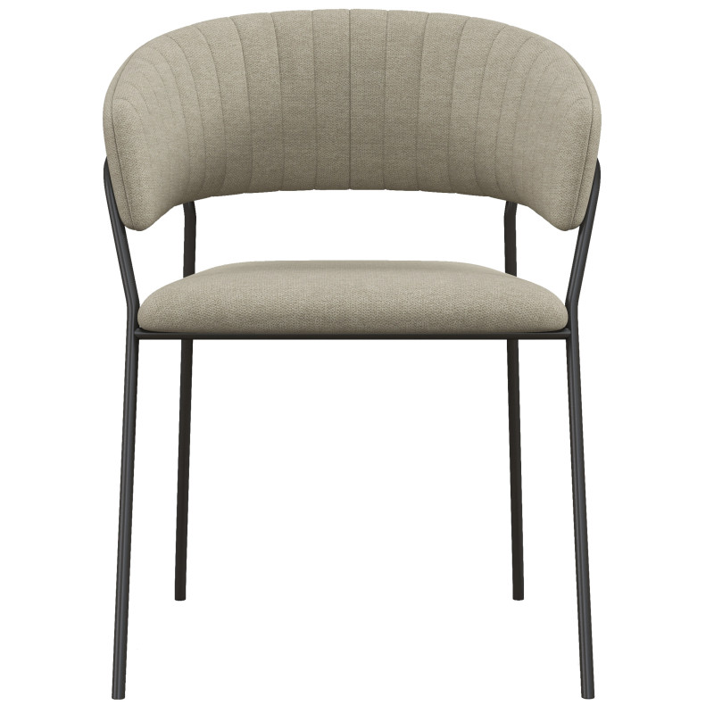 La structure en acier noir propose une hauteur d'assise en 45 cm. Il est revêtu d'un beau tissu coloris Lin très tendances avec un dossier surpiqué et galbé qui assure un très bon maintien du dos et rembourré avec de la mousse haute-résilience.