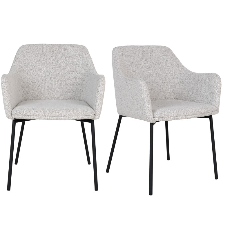 Élégance de la texture. Ce fauteuil de table en tissu bouclette écru allie le confort d'un fauteuil à la fonctionnalité d'une chaise. Le piètement en métal noir apporte une touche moderne. L'alliance parfaite de la matière et de la ligne pour un repas confortable.
