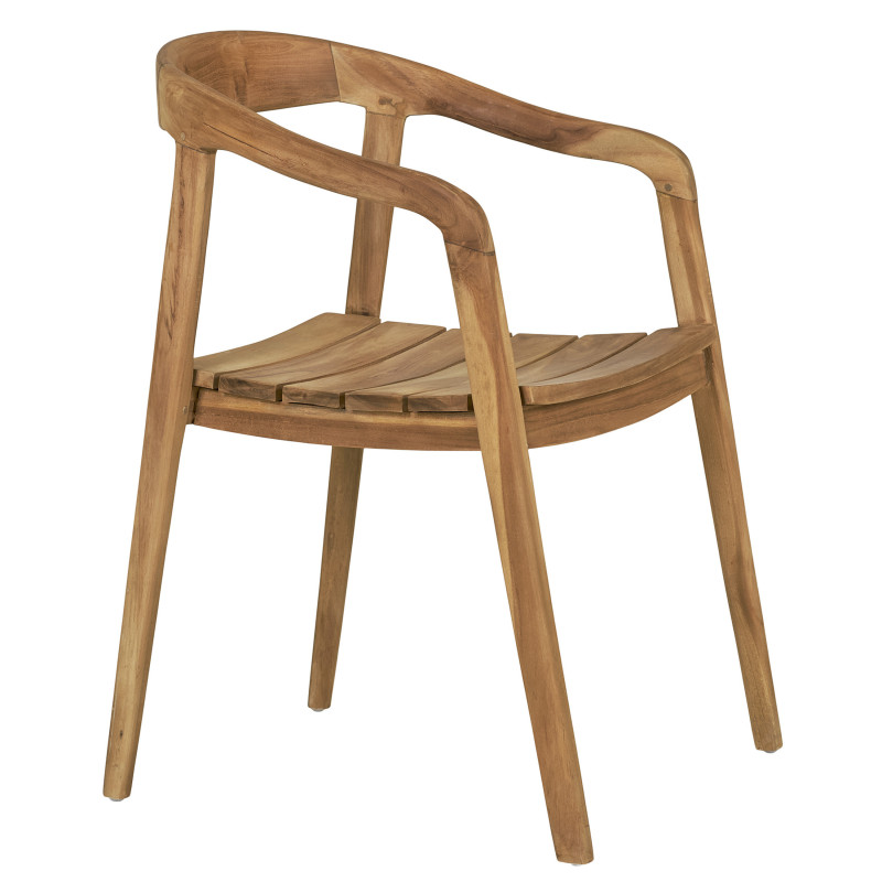 Collection MORS : Fauteuil de table Teck Recyclé Authenticité et style. Ce fauteuil de table est en teck recyclé. Il allie le charme brut du bois à un confort moderne. L'alliance parfaite de la matière et de la ligne pour un repas écologique et élégant. Dimensions : L. 55 x l. 54 x H. 76 cm