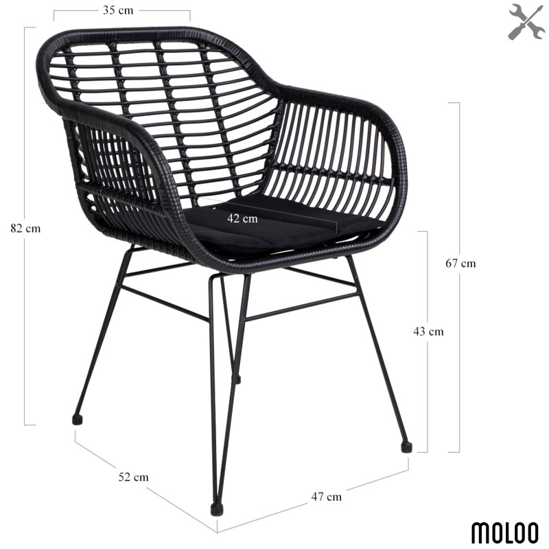 Exotisme sombre. Ce fauteuil de table noir en rattan tressé apporte une touche de caractère. Le piètement en métal noir renforce le contraste. L'alliance parfaite de la matière et de la ligne pour un style affirmé et tendance.Dimensions : L. 60x l. 57 x H. 82 cm
