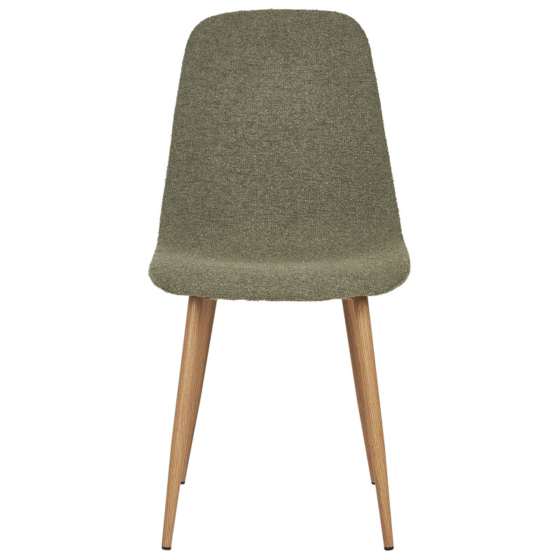 Collection SALYA : Chaise Tissu Chenille Vert Foncé Texture et luxe. Cette chaise en tissu chenille vert foncé apporte une richesse tactile et une couleur profonde. Le piètement en métal chêne renforce son style chic. L'alliance parfaite de la matière et de la ligne pour un repas élégant. Dimensions : L. 54 x l. 44 x H. 88 cm