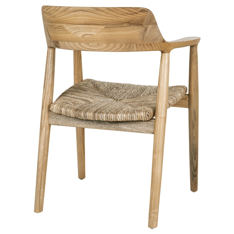 Exotisme authentique. Ce fauteuil de table naturel en feuille de bananier tressée et bois massif apporte une touche tropicale chic. Le tressage artisanal et la structure en bois garantissent son charme. L'alliance parfaite de la matière et de la ligne pour un repas unique.