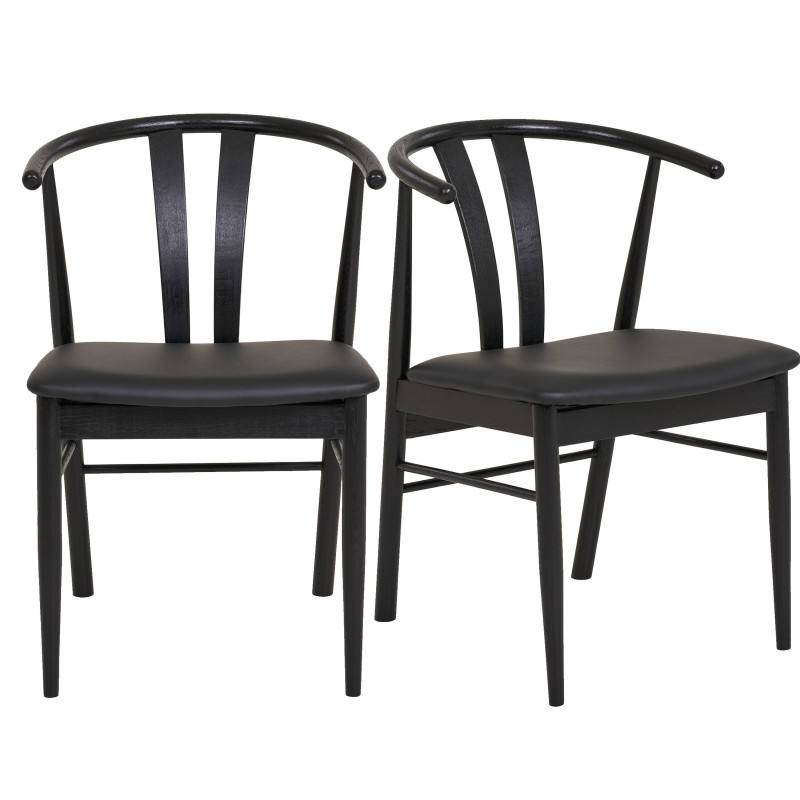 Contraste et modernité. Ce fauteuil de table en PU noir est soutenu par une structure en chêne massif noir. Le noir intégral crée une silhouette nette et contemporaine. L'alliance parfaite de la matière et de la ligne pour un repas chic.