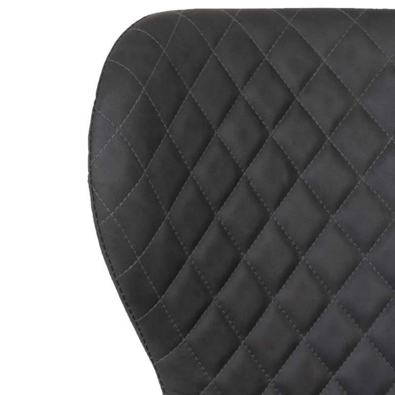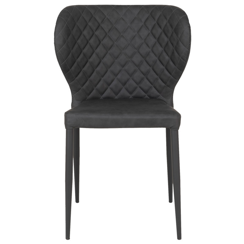 Collection VARS : Chaise Cuir Synthétique Gris Foncé Modernité et robustesse. Cette chaise en cuir synthétique gris foncé offre un style contemporain et un entretien facile. Le piètement en métal noir assure une ligne nette. L'alliance parfaite de la matière et de la ligne pour un repas affirmé. Dimensions : L. 52 x l. 54 x H. 83 cm