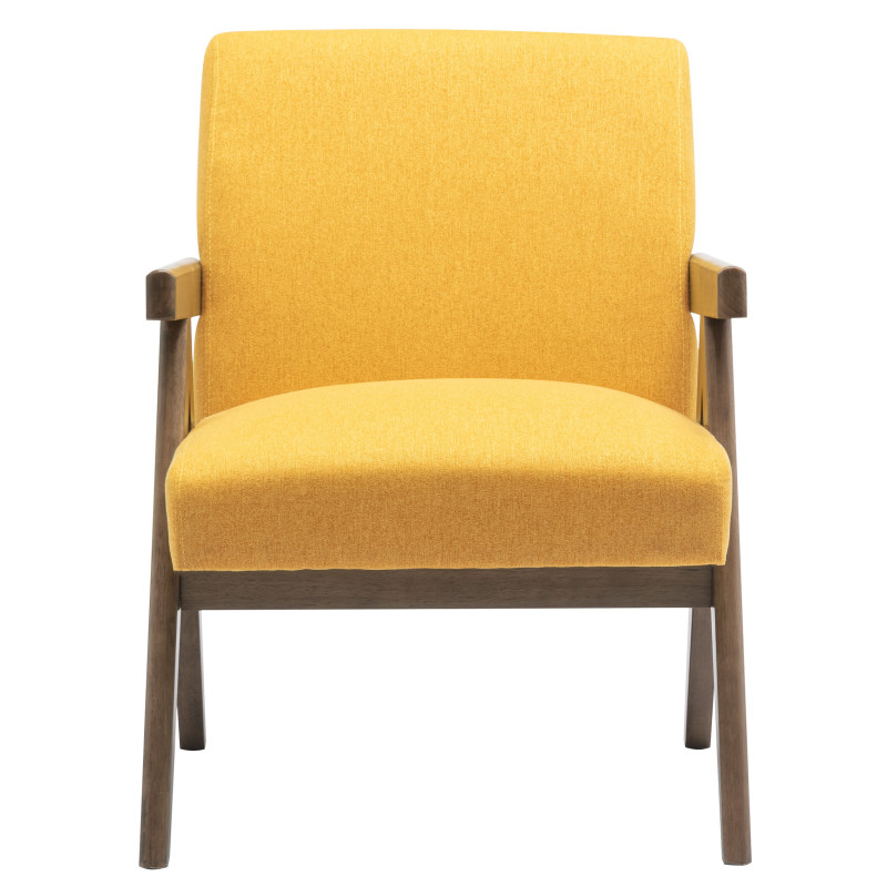 Le fauteuil WARREN propose une ligne scandinave avec un soupçon d'esprit vintage. La structure en hévéa massif teinté noyer et le revêtement en tissu Moutarde lui confère un look très tendance. Le confort n'est pas en reste, grâce à sa suspension intègrant des ressorts et à son rembourrage en mousse haute-résilience (HR). Dans votre salon ou votre chambre, laissez-vous séduire par son style rétro.