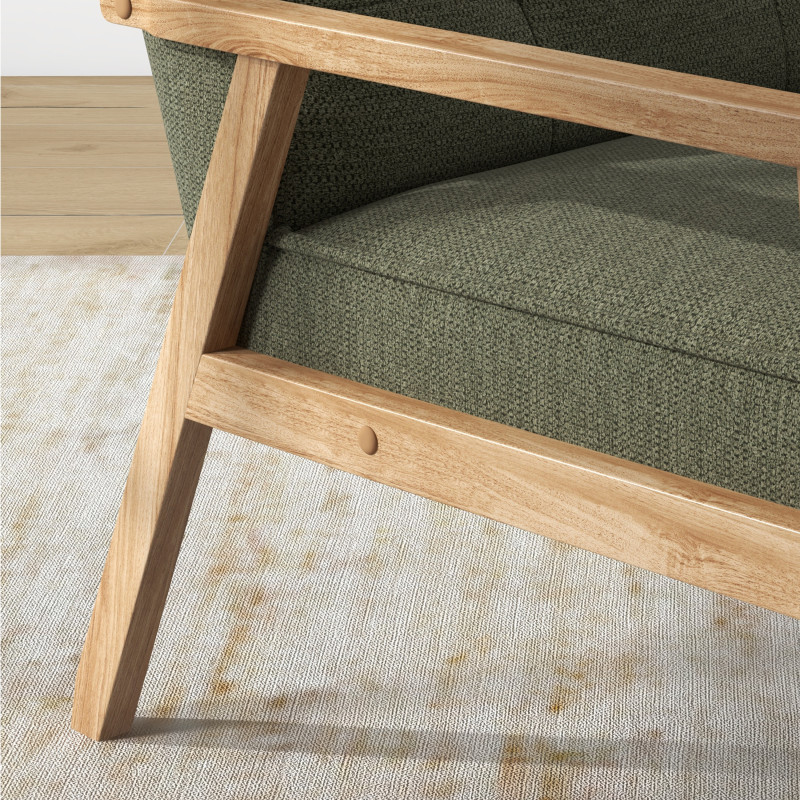 Son revêtement en tissu Sauge très actuel et son dossier surpiqué souligne son style chic et nature.