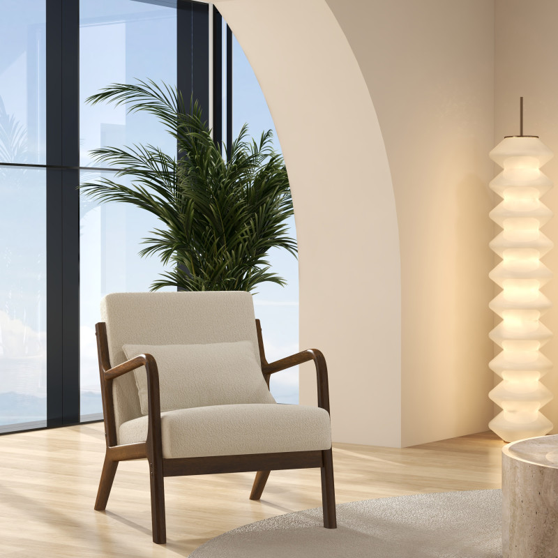 La structure en hévéa massif certifiée FSC, pour une gestion éco-responsable de nos forêts, dispose de belles sections courbées et galbées, le revêtement en tissu Curly lui confère un look très tendance.
