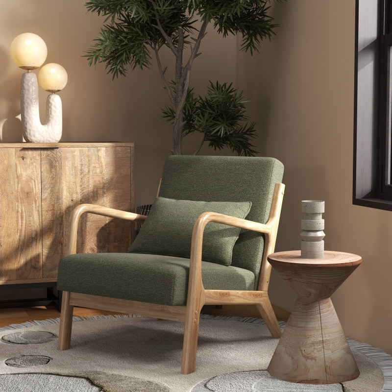 La structure en hévéa massif certifiée FSC, pour une gestion éco-responsable de nos forêts, dispose de belles sections courbées et galbées, le revêtement en tissu Curly lui confère un look très tendance.