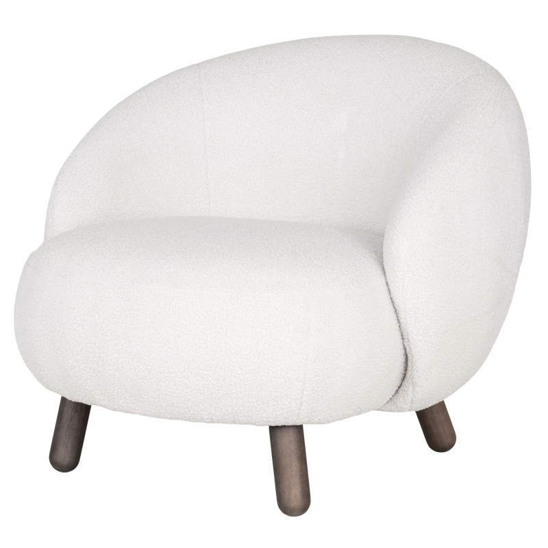 Collection MIMI : Fauteuil Tissu Bouclé Cocon naturel. Ce fauteuil en tissu bouclé écru est soutenu par des pied en bois massif. Son design enveloppant et sa texture douce invitent au repos. L'alliance parfaite de la matière et de la ligne pour créer un coin cosy. Confort enveloppant garanti. Dimensions : L. 80 x l.76 x H. 67,5 cm