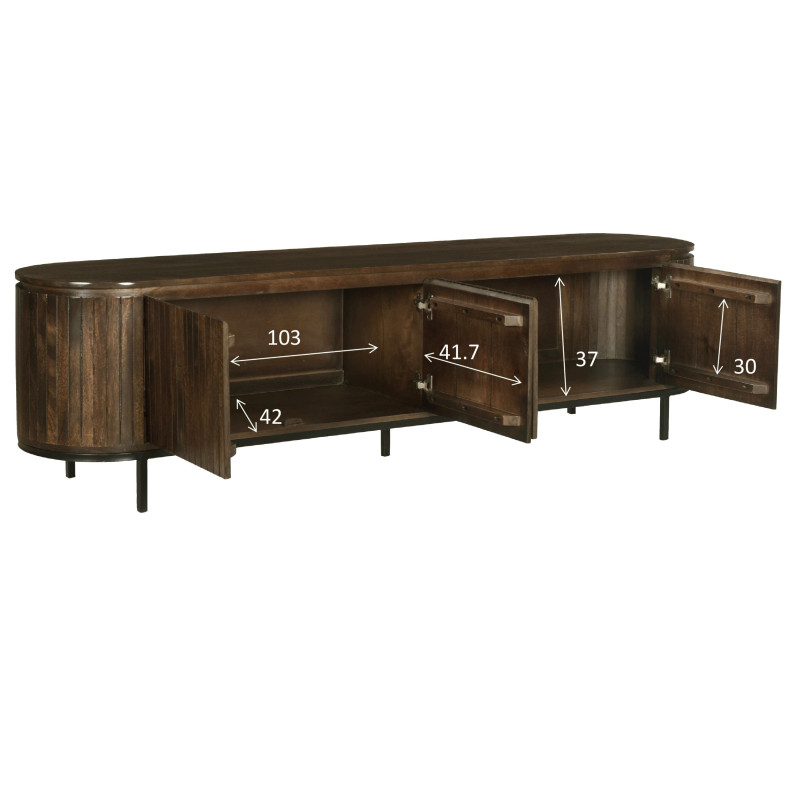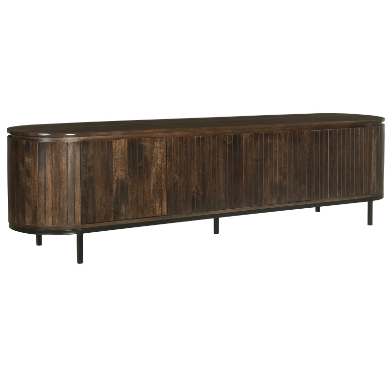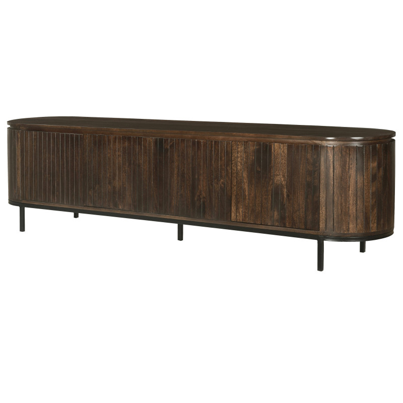 Le meuble TV brun en 210 cm dispose de 4 portes.