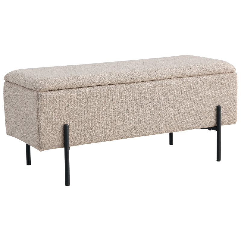 Douceur fonctionnelle. Ce banc beige en tissu bouclette est un atout charme et pratique. Il offre une assise tendance et un espace de rangement caché. L'alliance parfaite de la matière et de la ligne pour un intérieur chic.