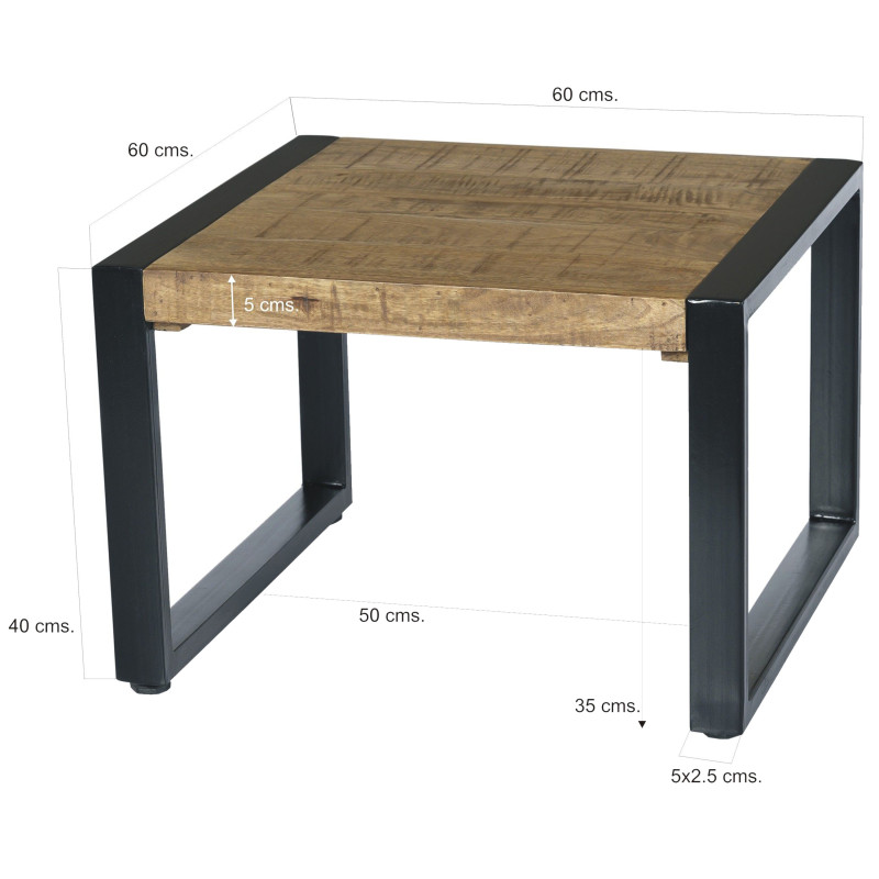 La table basse carrée présentée est en 60 cm de largeur et 60 cm de profondeur.