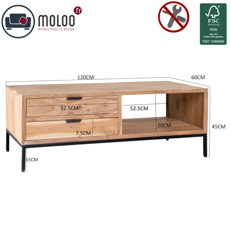 Tous nos meubles sont intégralement fabriqués en Bois massif à la main de façon artisanale. Les essences de bois utilisées sont certifiées.Ils sont livrés assemblés, à l'exception des tables