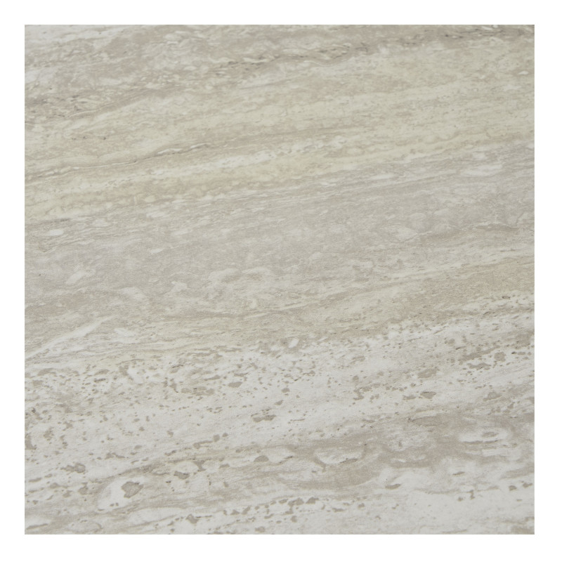 Contraste et élégance. Cette table basse effet travertin compacte apporte une touche minérale et sophistiquée. Son plateau texturé est mis en valeur par un piètement en métal noir. L'alliance parfaite de la matière et de la ligne pour un coin salon tendance.