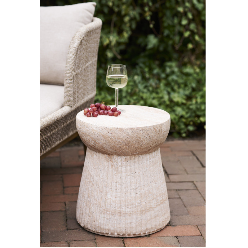 Minéralité brute. Cette petite table d'appoint ton pierre en argile fibrée est une pièce de caractère. Sa texture brute et sa couleur naturelle apportent un cachet authentique. L'alliance parfaite de la matière et de la ligne pour un style wabi-sabi.