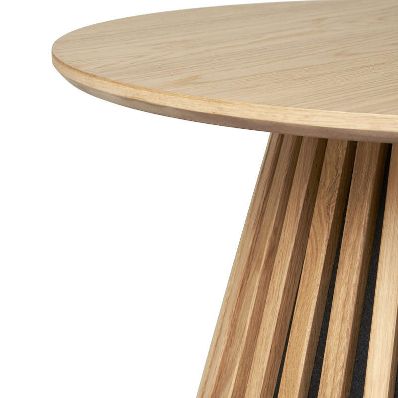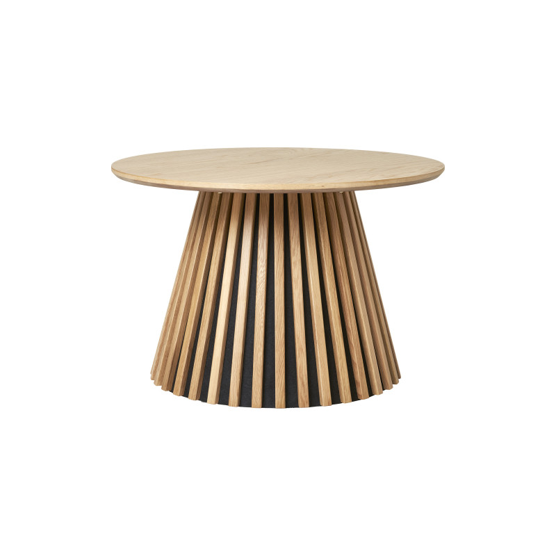 Collection KAIRN : Table basse Chêne Naturel Douceur naturelle. Cette table basse ronde chêne naturel repose sur son piètement à lattes. La chaleur du chêne est mise en valeur par la forme généreuse. L'alliance parfaite de la matière et de la ligne pour un intérieur scandinave chic. Dimensions : L. 70 x l. 70 x H. 45 cm