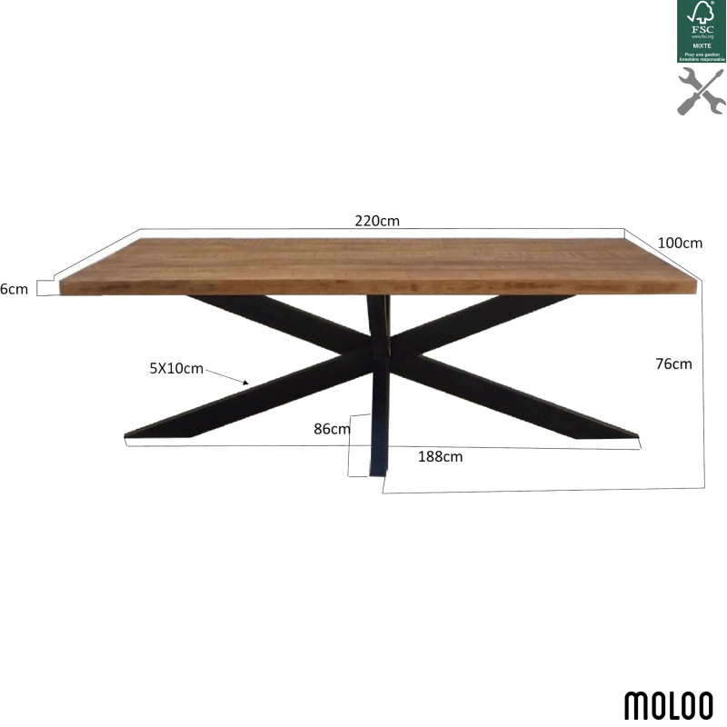 La version pied "Spider" en 240 x 100 cm peut accueillir 10 convives.