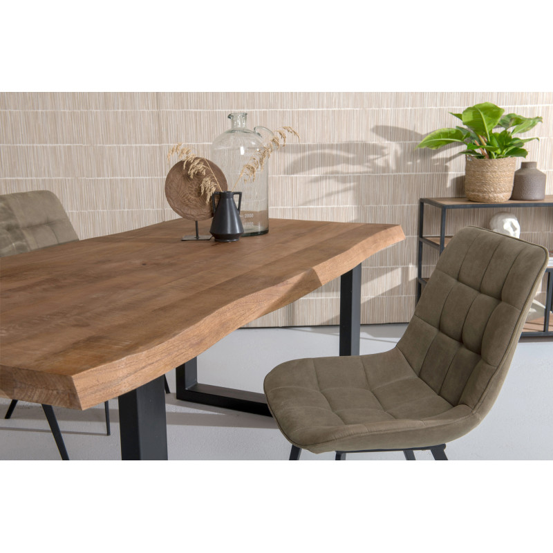 La collection de table repas MANAUS se distingue par un aspect massif, robuste grâce aux chants des plateaux de 6 cm d'épaisseur.