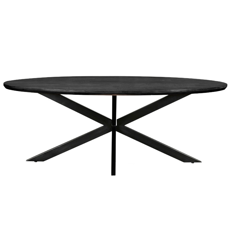 La collection de tables repas MACY se décline en format ovale ou rond et en plusieurs dimensions. Les plateaux sont en bois massif de Manguier certifié en finition naturellel ou teintée noir avec chants biseautés de 4 cm d'épaisseur. Les piètements sont en acier noir.