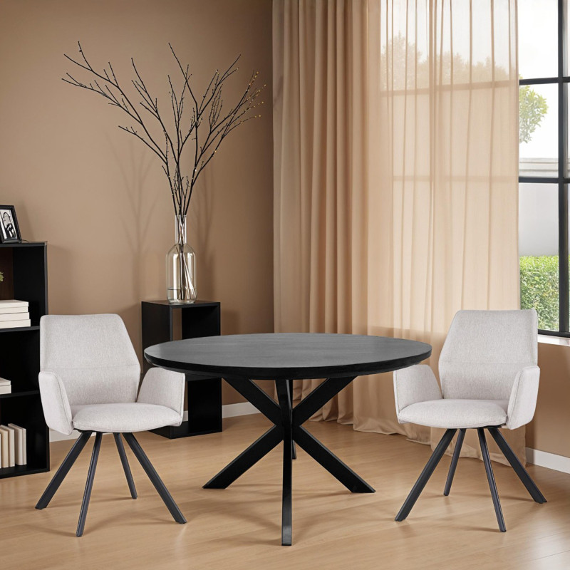 La collection de tables repas MACY se décline en format ovale ou rond et en plusieurs dimensions. Les plateaux sont en bois massif de Manguier certifié en finition naturelle ou teintée avec chants biseautés de 4 cm d'épaisseur. Les piètements sont en acier noir.