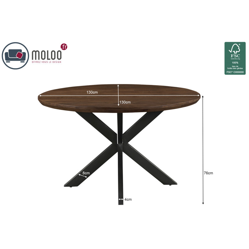 La version présentée est en diamètre 150 cm, finition brun.