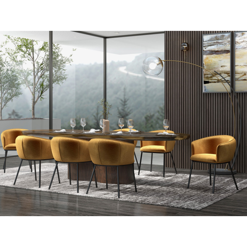 Visuels non contractuels. Chaque pièce est unique. Les nuances de teintes dues à l'assemblage de plusieurs lames de bois réagissant différemment à l'application des laques protectrices, les variations de couleur finales (plus claires ou plus foncées), les éventuelles marques naturelles, noeuds ou aspérités inhérents à l'emploi de matériaux tels que le bois, les marbres, le métal brut ne constituent pas un défaut tel que définis dans nos conditions générales de vente. Les photos des tables déclinées en plusieurs dimensions peuvent ne pas correspondre à la réalité.