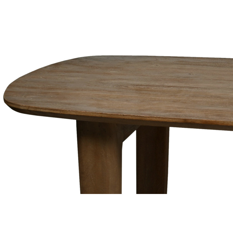 On aime particulièrement le travail sur les meubles avec les chants biseautés en façade, les poignées fraisées et le piètement trapu en bois massif. Les tables repas proposent un beau plateau avec chants biseautés et arrondis de 3 cm, associé à un superbe pied en Bois massif avec des sections généreuses.