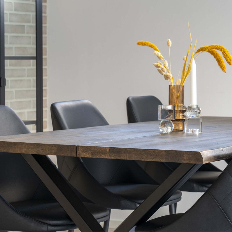 Authenticité compacte. Cette table en chêne massif fumé est idéale pour les repas de famille. Son plateau solide et sa structure chaleureuse s'intègrent dans un style scandinave ou rustique chic. L'alliance parfaite de la matière et de la ligne pour un espace convivial, Le bois brut apporte une touche de naturel. Possibilité de rajouter un lot de 2 allonges (2x 50cm)