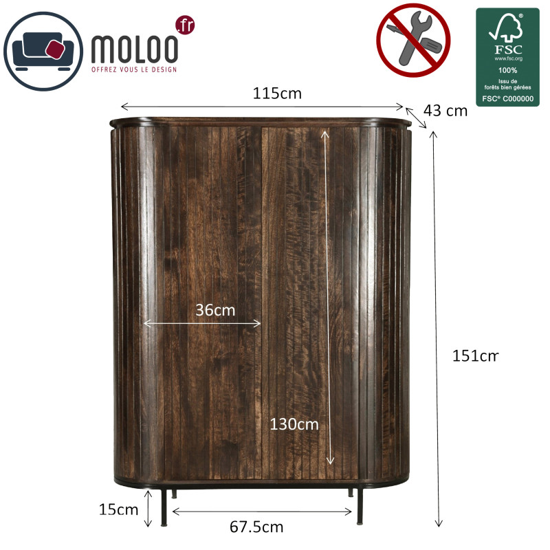 La credenza alta presentata in versione scura offre un bellissimo spazio di contenimento con 2 grandi ante frontali.